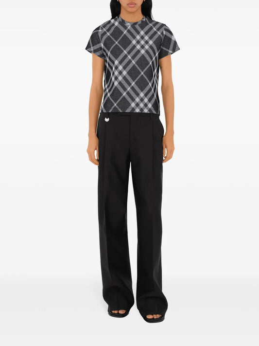 Check Stretch Cotton-Blend T-Shirt