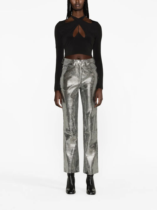 Striped Straight-Leg Leather Trousers