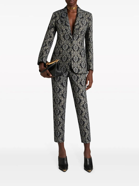 Floral-Brocade Cropped Trousers