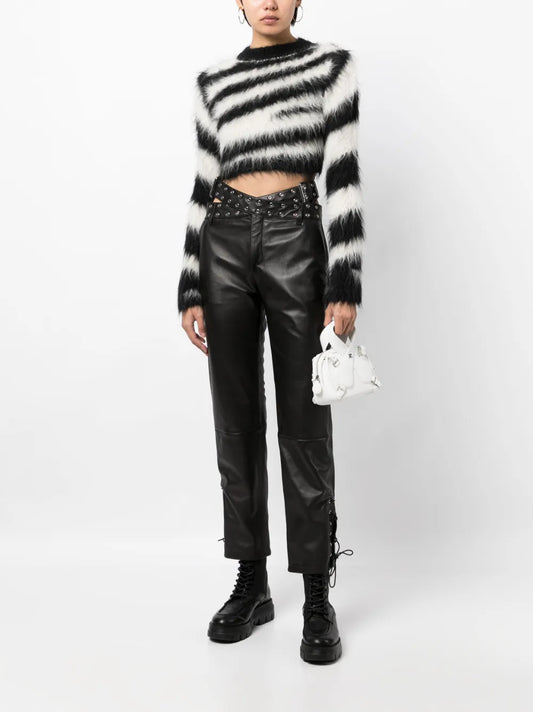 Criss-Cross Belt Leather Trousers