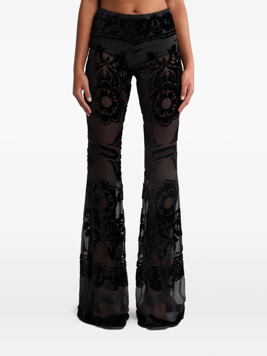 Floral-Embroidery Flared Trousers
