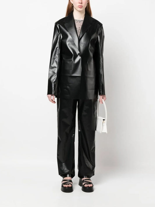Faux-Leather Flared Trousers