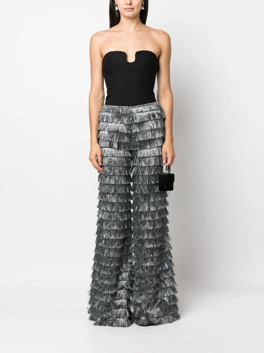 Wide-Leg Fringed Trousers