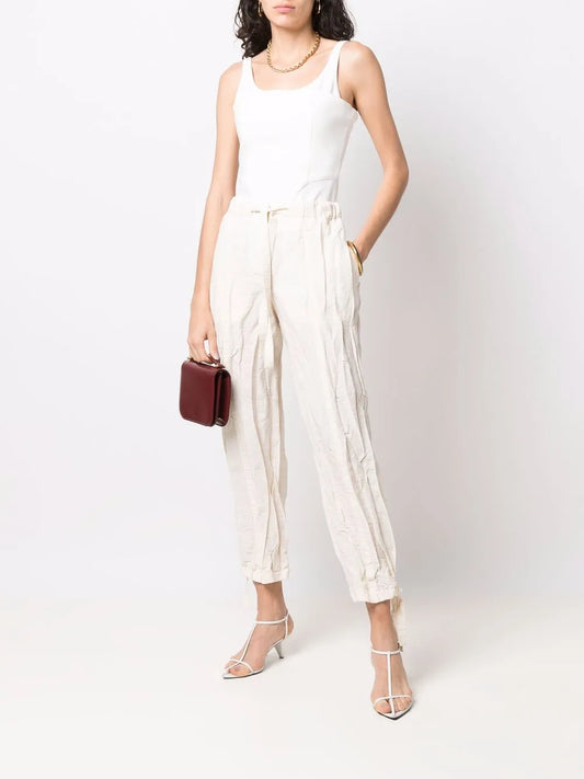 Drawstring Crinkle-Effect Trousers
