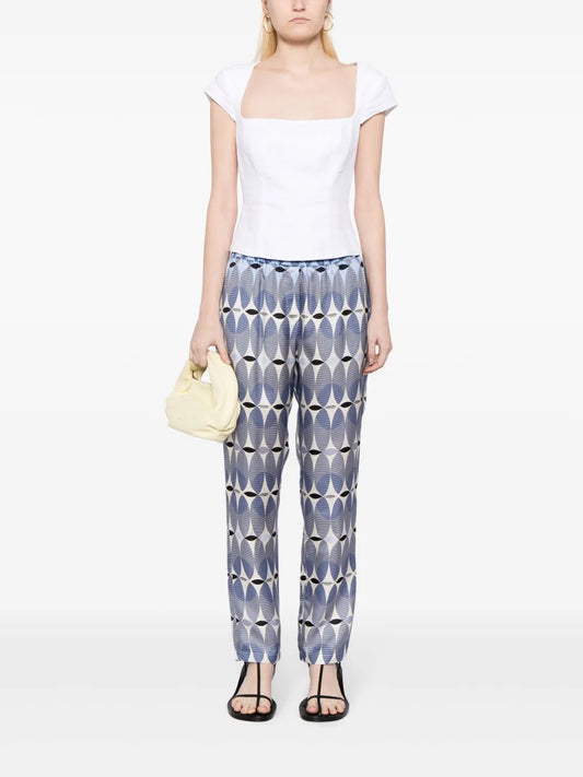 Graphic-Print Elasticated-Waist Silk Trousers