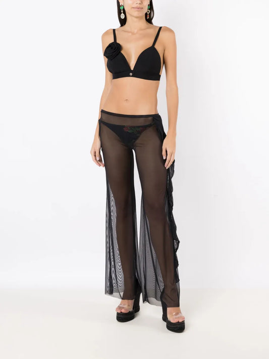 Sheer Ruffled-Trim Trousers