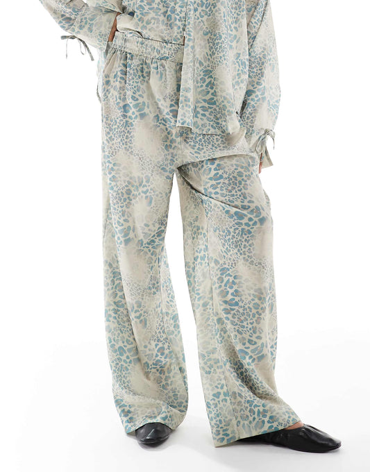 Exclusive Satin Drawstring Waist Wide Leg Trousers Co-Ord