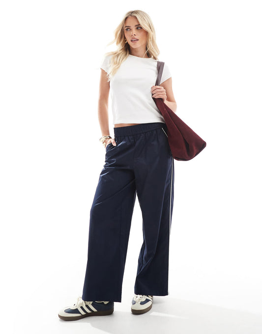 Petite Contrast Piping Wide Leg Trousers
