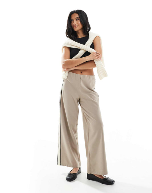 Petite Loose Pull On Trousers With Side Stripe