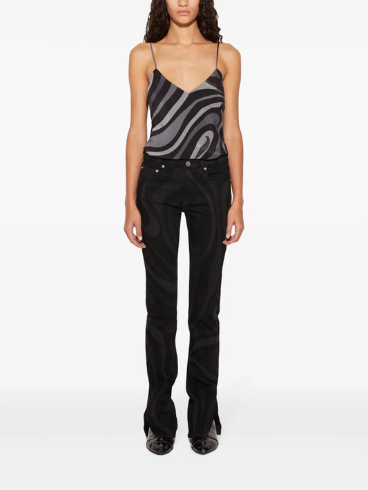 Marmo-Print Staight-Leg Trousers