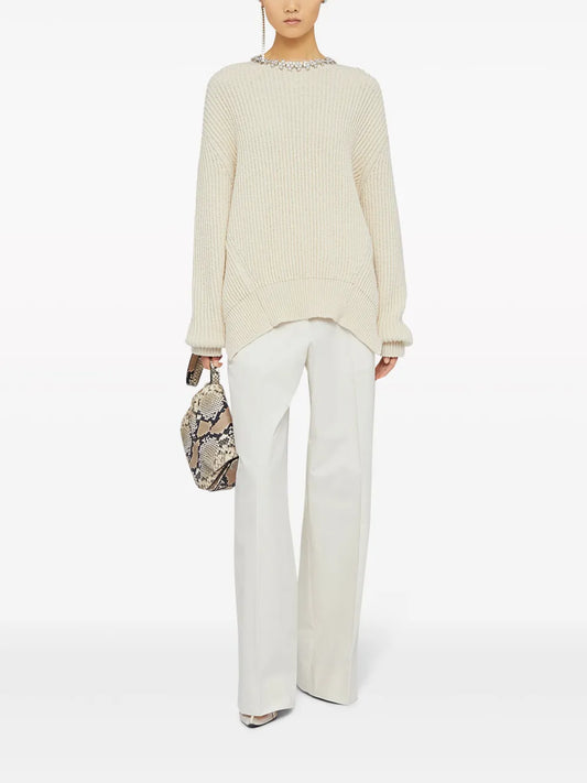 Chain-Detail High-Waisted Flared Trousers