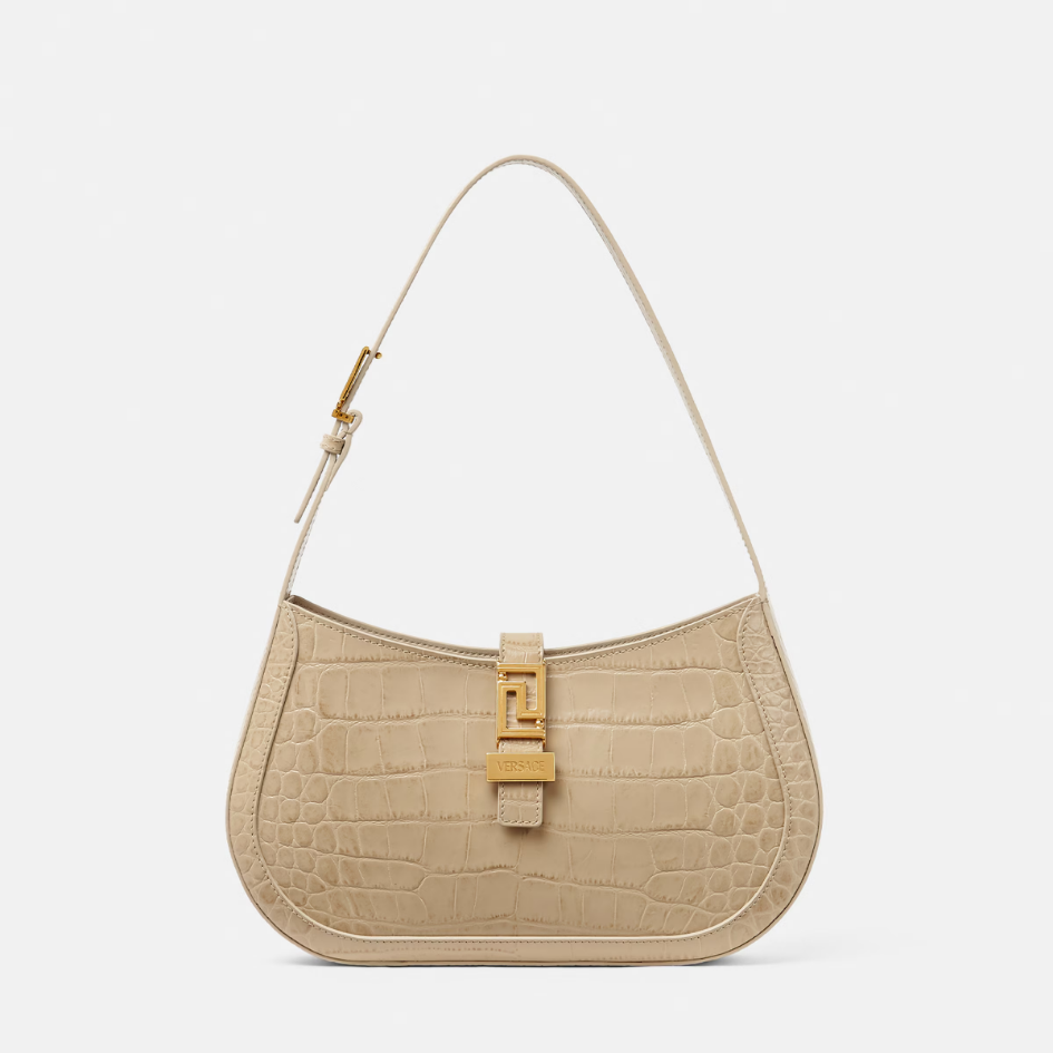 Croc-Effect Greca Goddess Hobo Bag